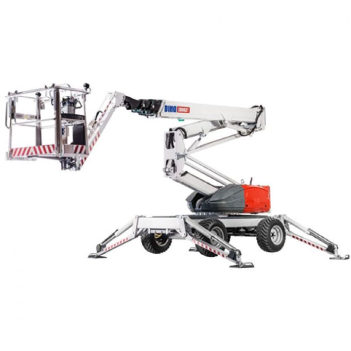 Gracias a las patas estabilizadora que permite nivelarla automaticamente hasta 13.5º. Dispone de un motor diésel primario que permite una velocidad de traslación de 10 km/h y poder superar rampas de hasta un 40%. El motor eléctrico permite hasta 4 movimientos simultáneos del brazo articulado facilitando y optimizando el tiempo de trabajo.